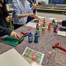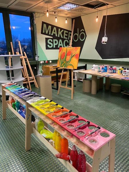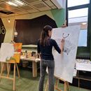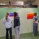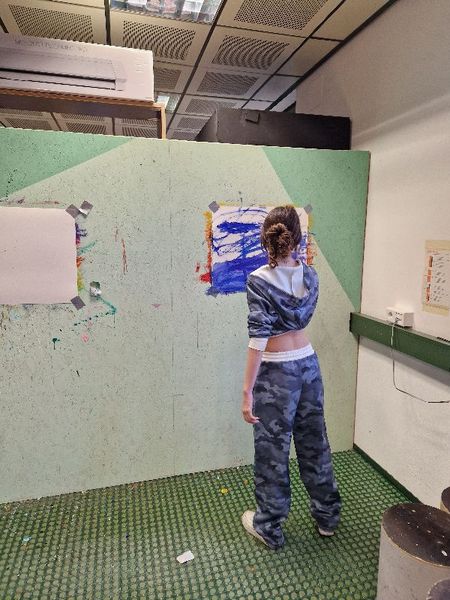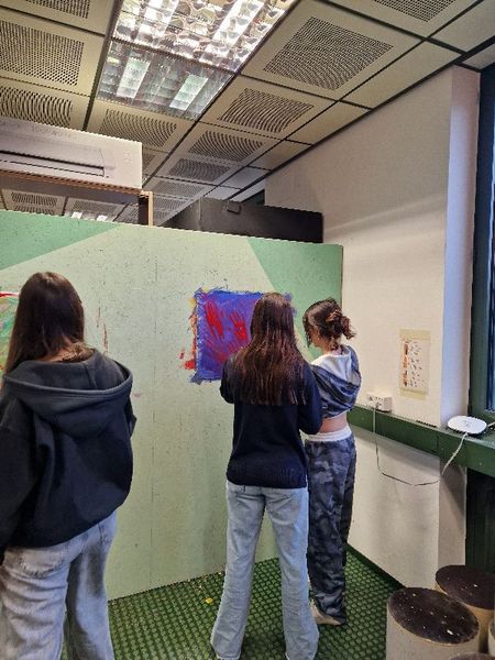 Letzten Donnerstag traf sich die 4b Klasse um 8 Uhr beim dô. Nach der Begrüßung zeigte Florian den Schüler*innen in der Werkstätte die verschiedenen Stationen. In einer Ecke konnten die Jugendlichen Gesichter porträtieren. Nebenan druckten und experimentierten die Schüler*innen mit Gelpaletten. An einer Wand durften sie großflächig mit Wasserfarben malen und zeichnen. Andere Jugendlichen übermalten Leinwände und fertigten eigene Kunstwerke. Danke Florian für den abwechslungsreichen und kreativen Workshop!